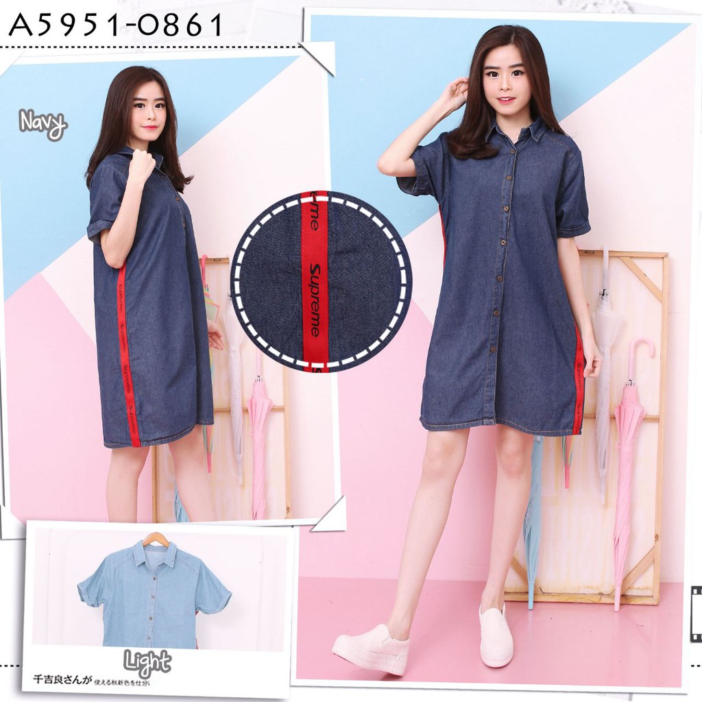 BR17429 - DRESS JEANS DRES CEWEK PAKAIAN BAJU TERUSAN WANITA TERBARU KEKINIAN MODERN MURAH