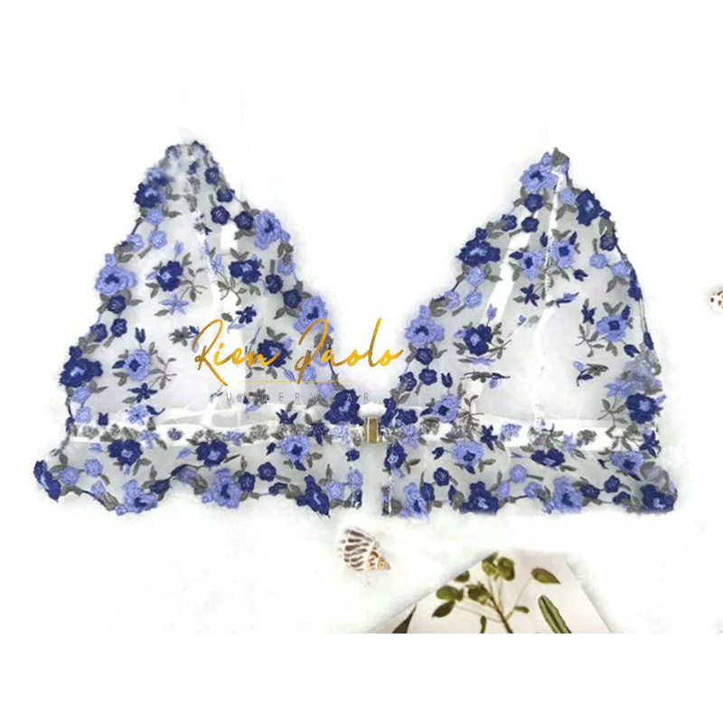 Premium Bra BH + Celana Dalam CD G String Set Sexy Hot Lingerie Tanpa Kawat Motif Bordir Bunga Transparan Seamless Renda Import Rien Paolo 320