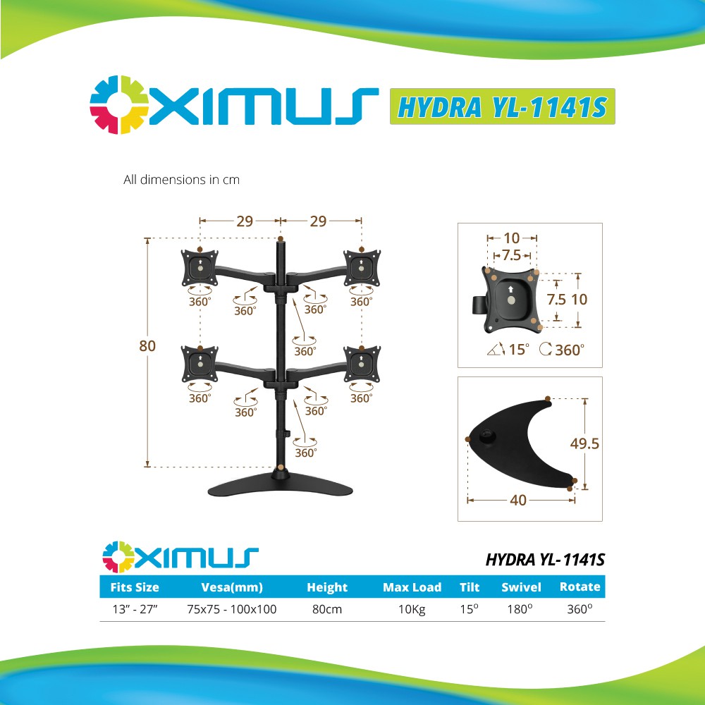 BRACKET LCD LED TV 13" - 27" OXIMUS HYDRA-YL1141S