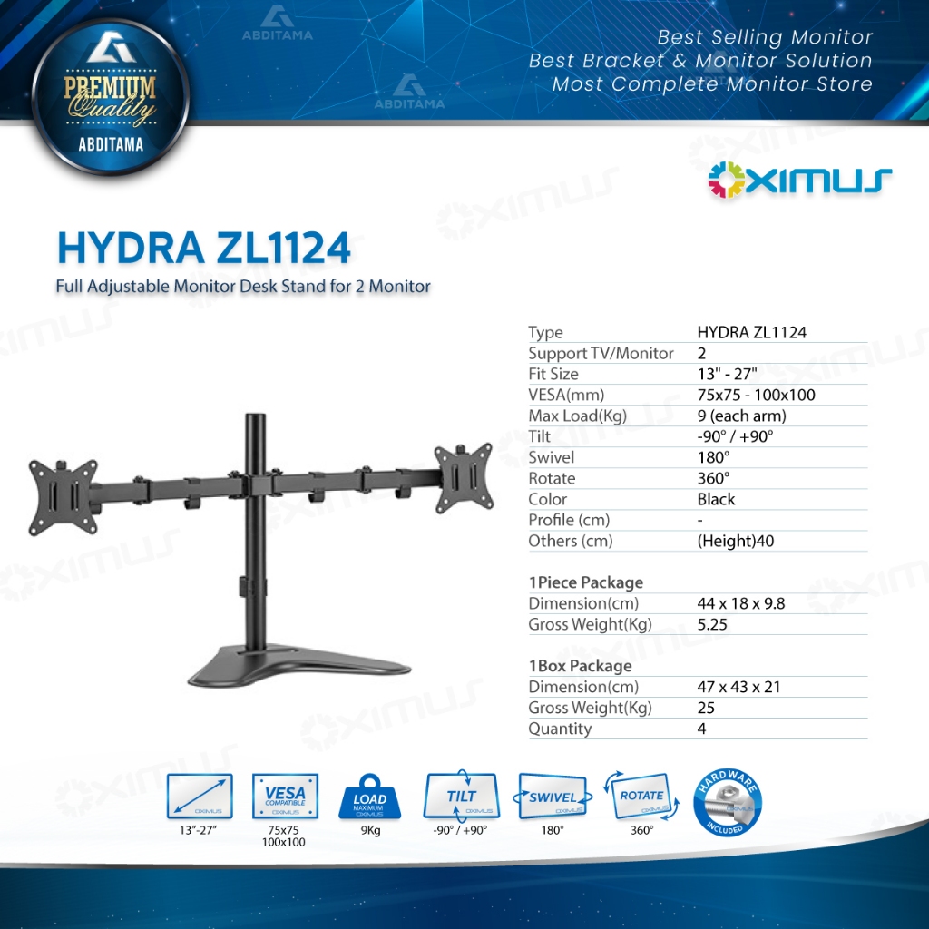 BRACKET MEJA LCD LED TV 2 Monitor 13" - 27" OXIMUS HYDRA ZL1124