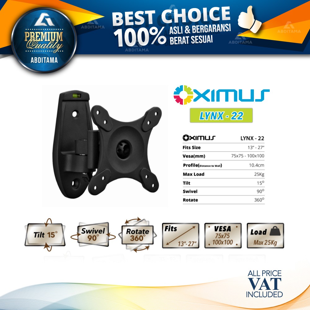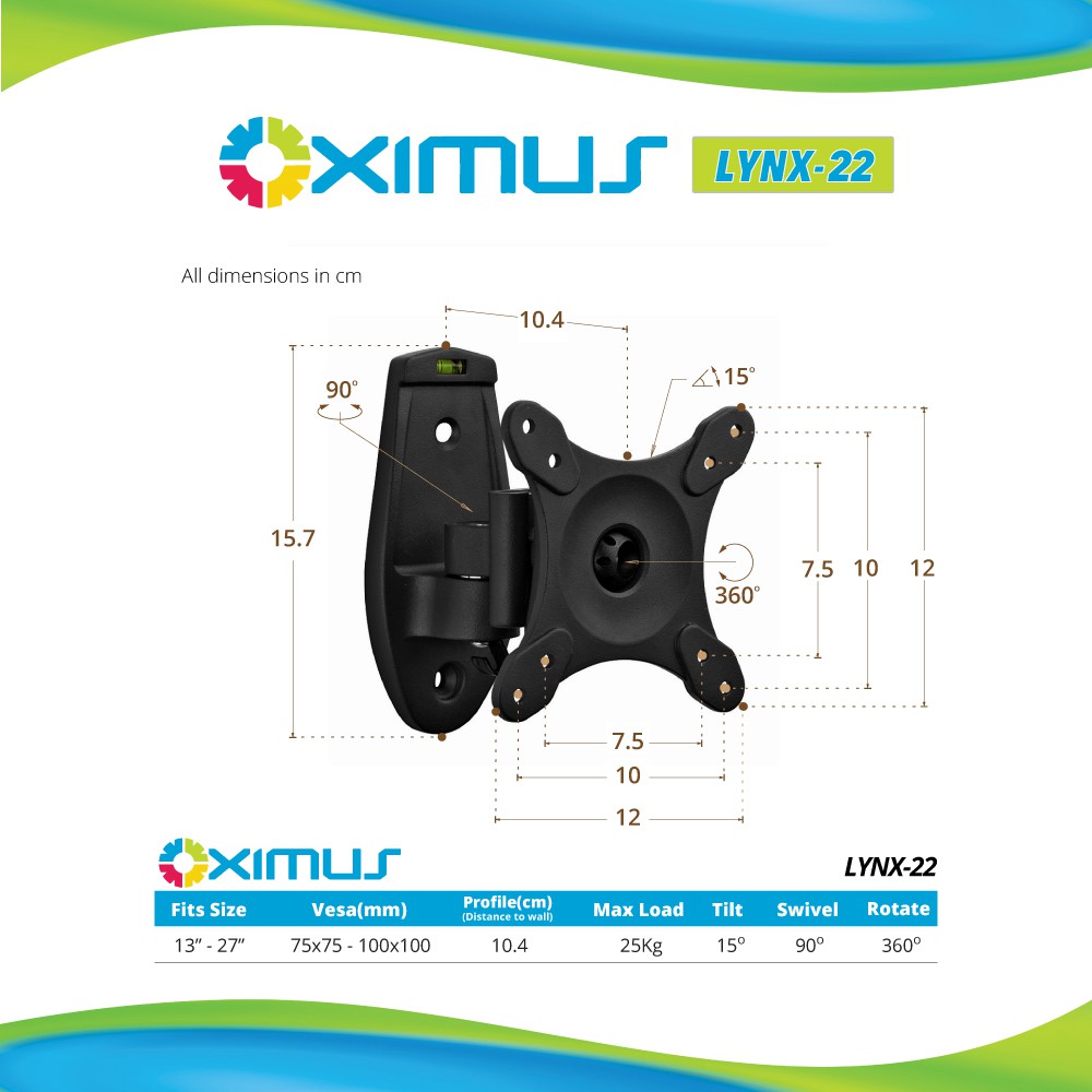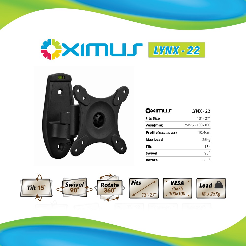 BRACKET TV Tilt Swivel LCD LED TV 13" - 27" OXIMUS LYNX-22 100X100