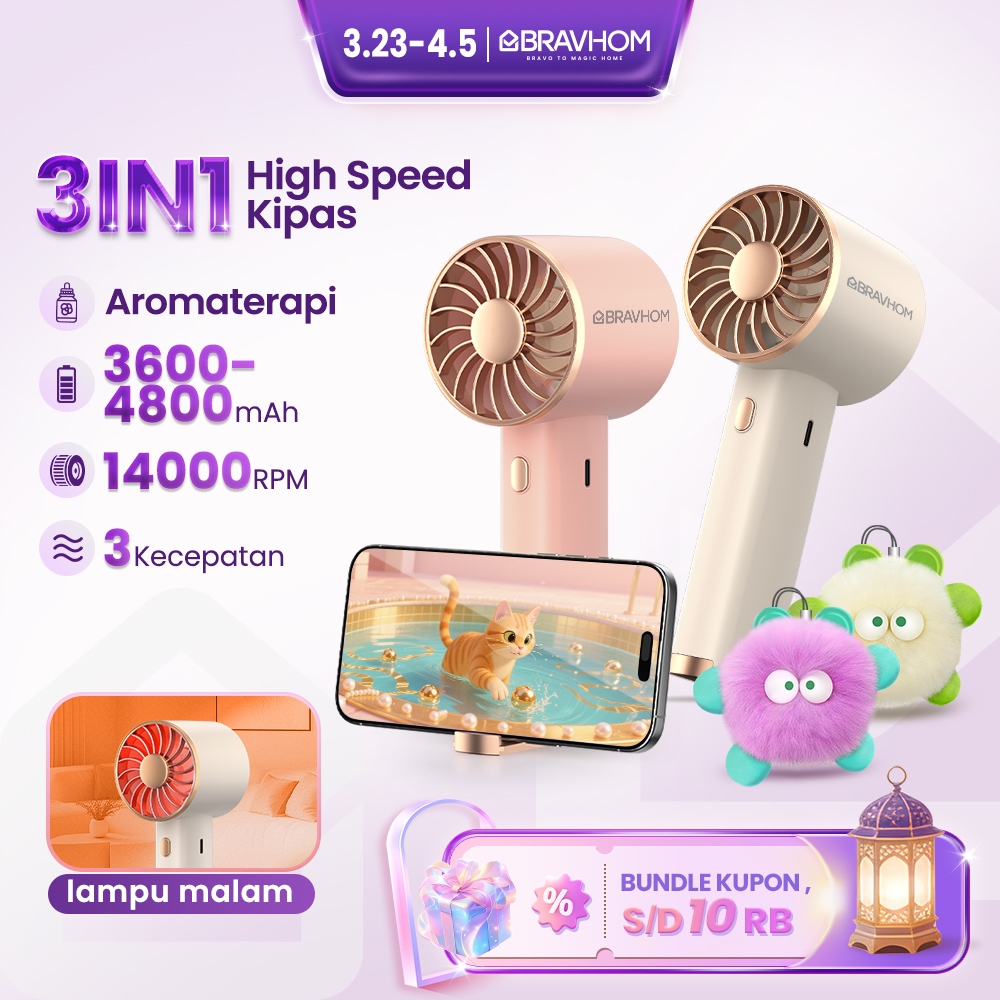 BRAVHOM Kipas Angin Mini 3IN1 Powerbank Aromaterapi 3 kecepatan Kipas Angin Portable dan Lampu FN16