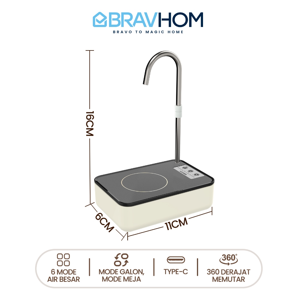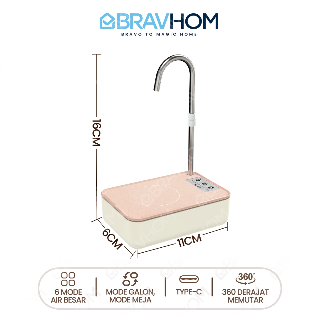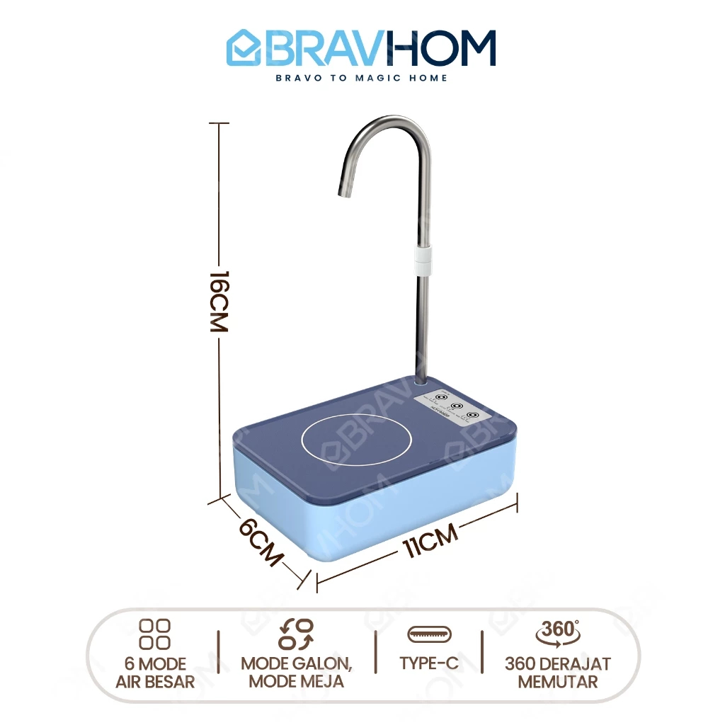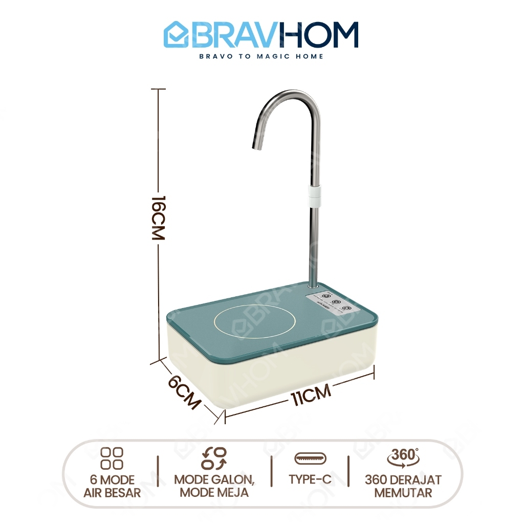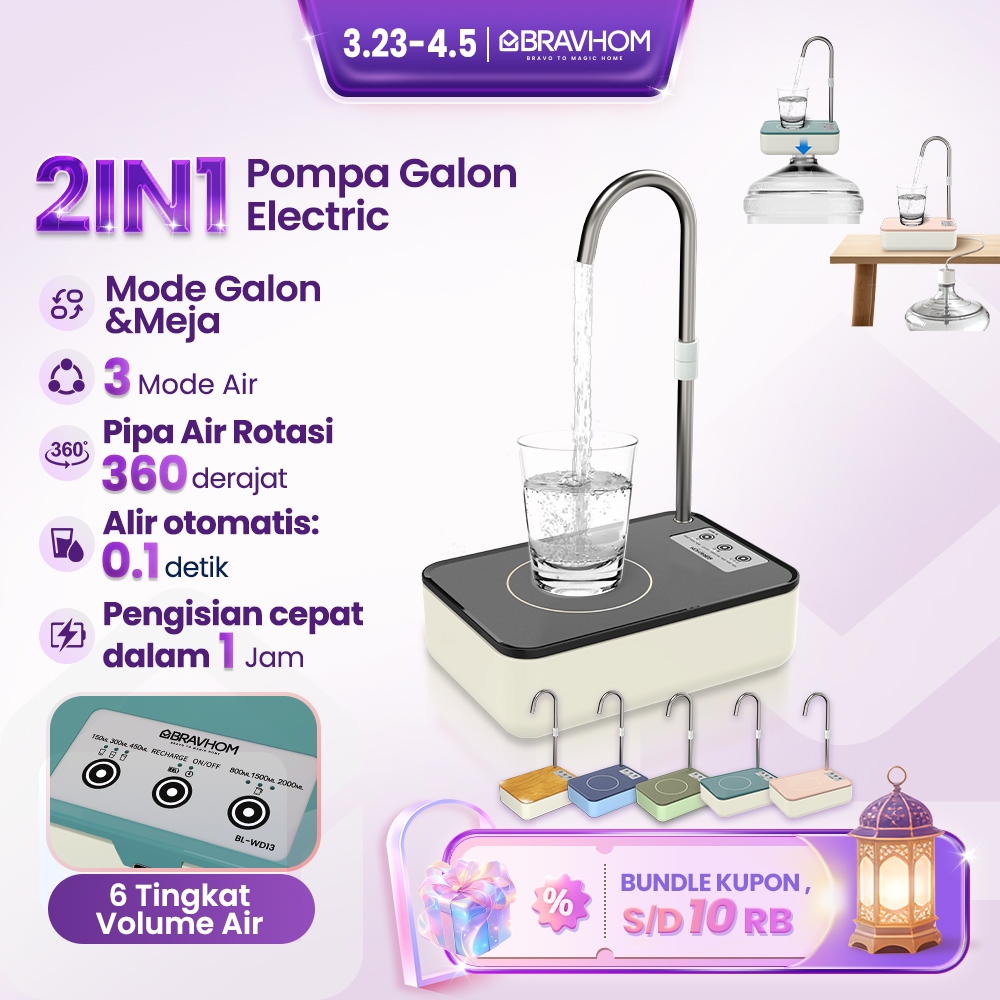 BRAVHOM Pompa Air Galon Elektrik 2in1 Pompa Galon Dispenser Air Rumah dan Luar Ruangan BL-WD13