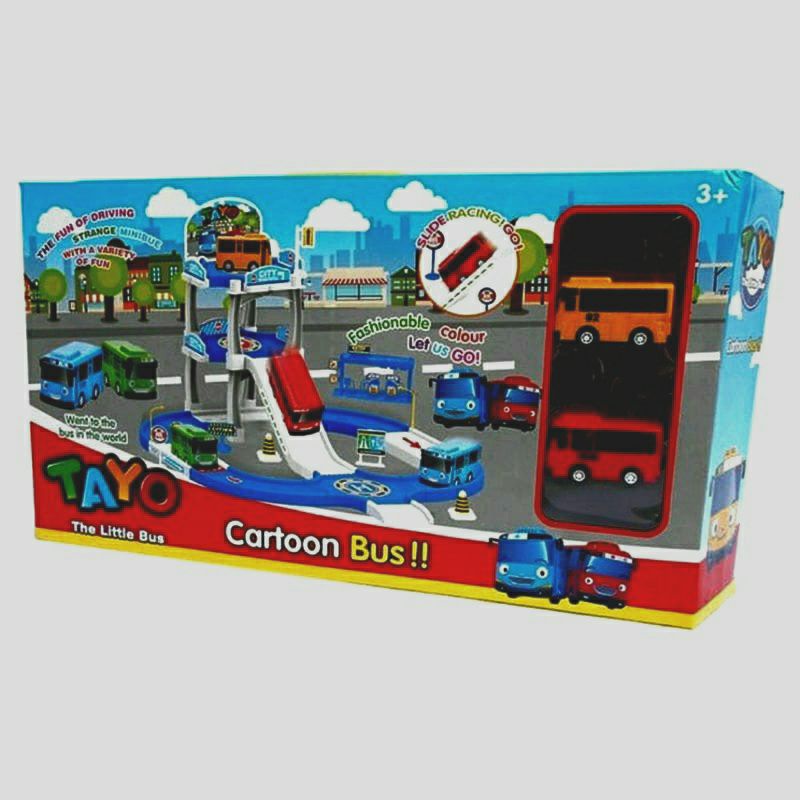 BRO- 1300 Mainan Tayo Parkir Bus Tayo Cartoon Bus Dapat 2 Pcs Mobil