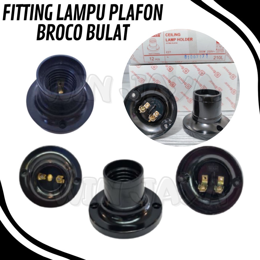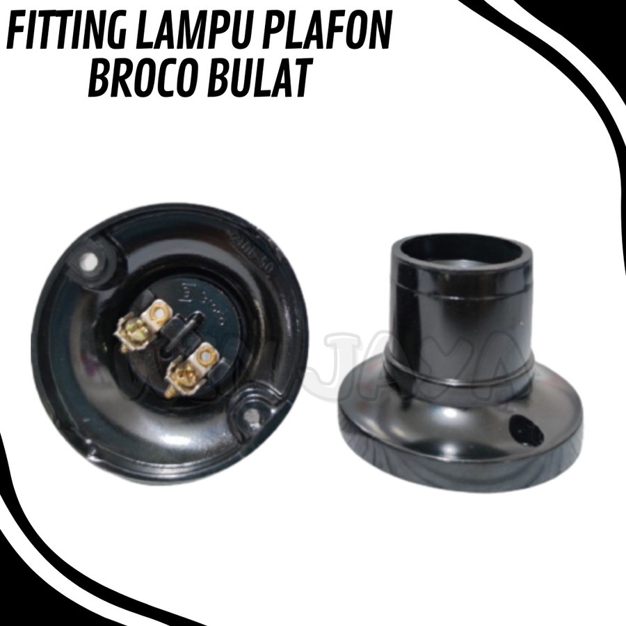 BROCO FITING LAMPU PLAFON BULAT RUMAH LAMPU FITTING LAMPU HITAM BULAT