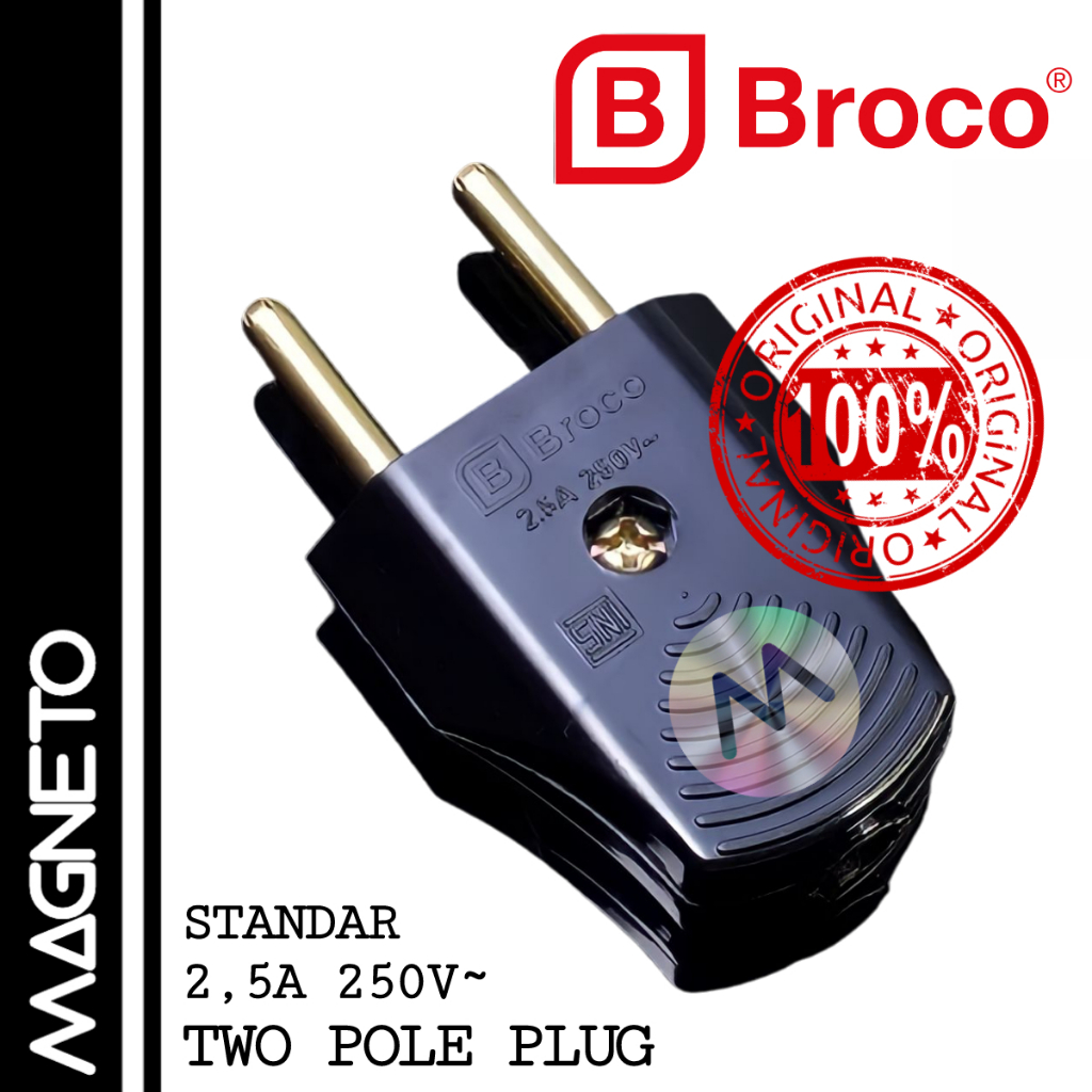 BROCO Steker Gepeng Hitam Male & Female Contra Jek Colokan Listrik Broko Male Dan Female Tusuk Kontak Cowok & Cewek
