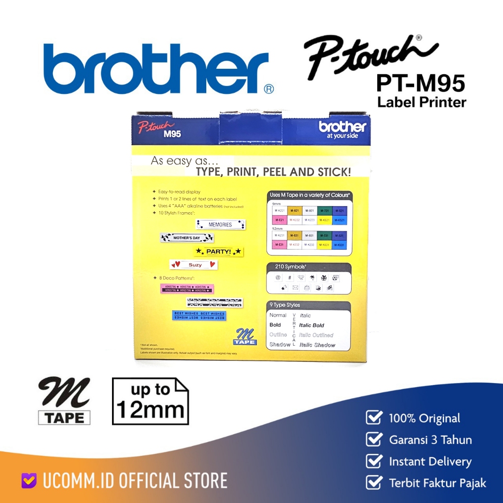 BROTHER Stiker Label Printer PT M95 Print Handy Maker M-Tape Series Printer Label Brother PT-M95 Garansi