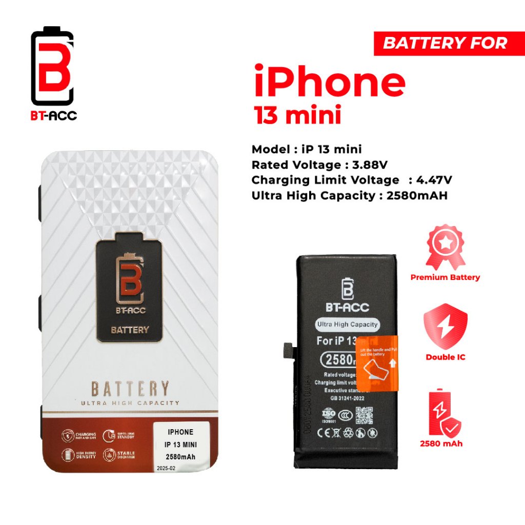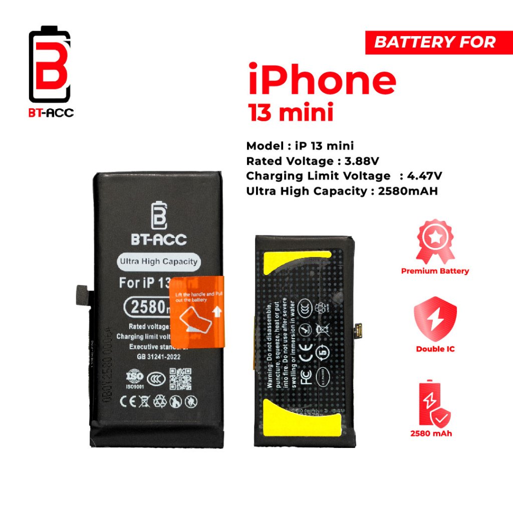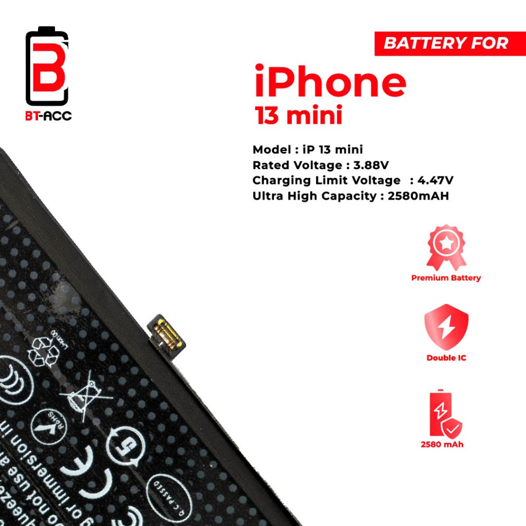 BT-ACC Ultra High Capacity Battery Baterai Batre For iPhone 13 Mini With 2580mAh