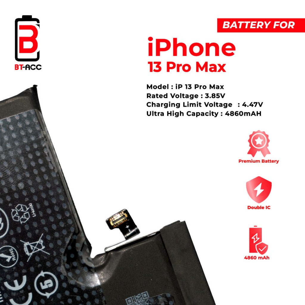 BT-ACC Ultra High Capacity Battery Baterai Batre For iPhone 13 Pro Max With 4860mAh