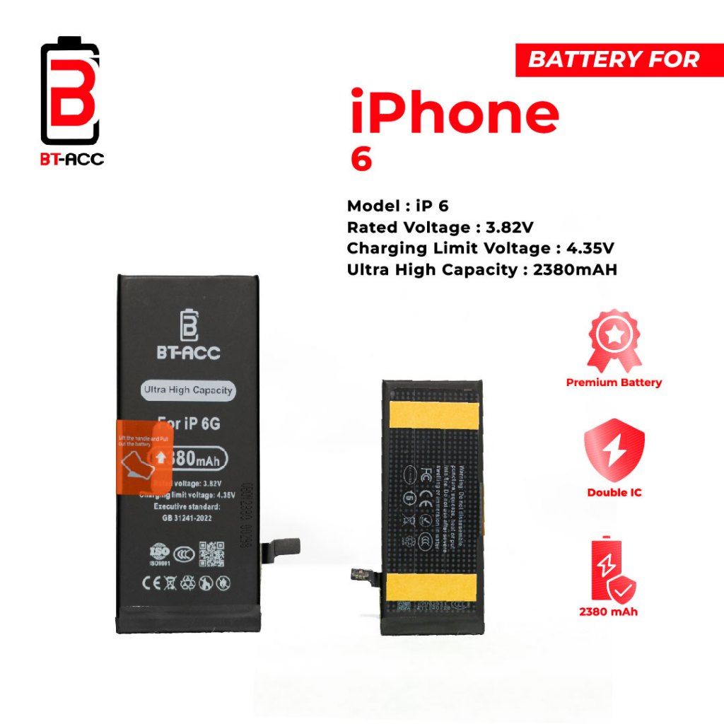 BT-ACC Ultra High Capacity Battery Baterai Batre For iPhone 6 With 2380mAh