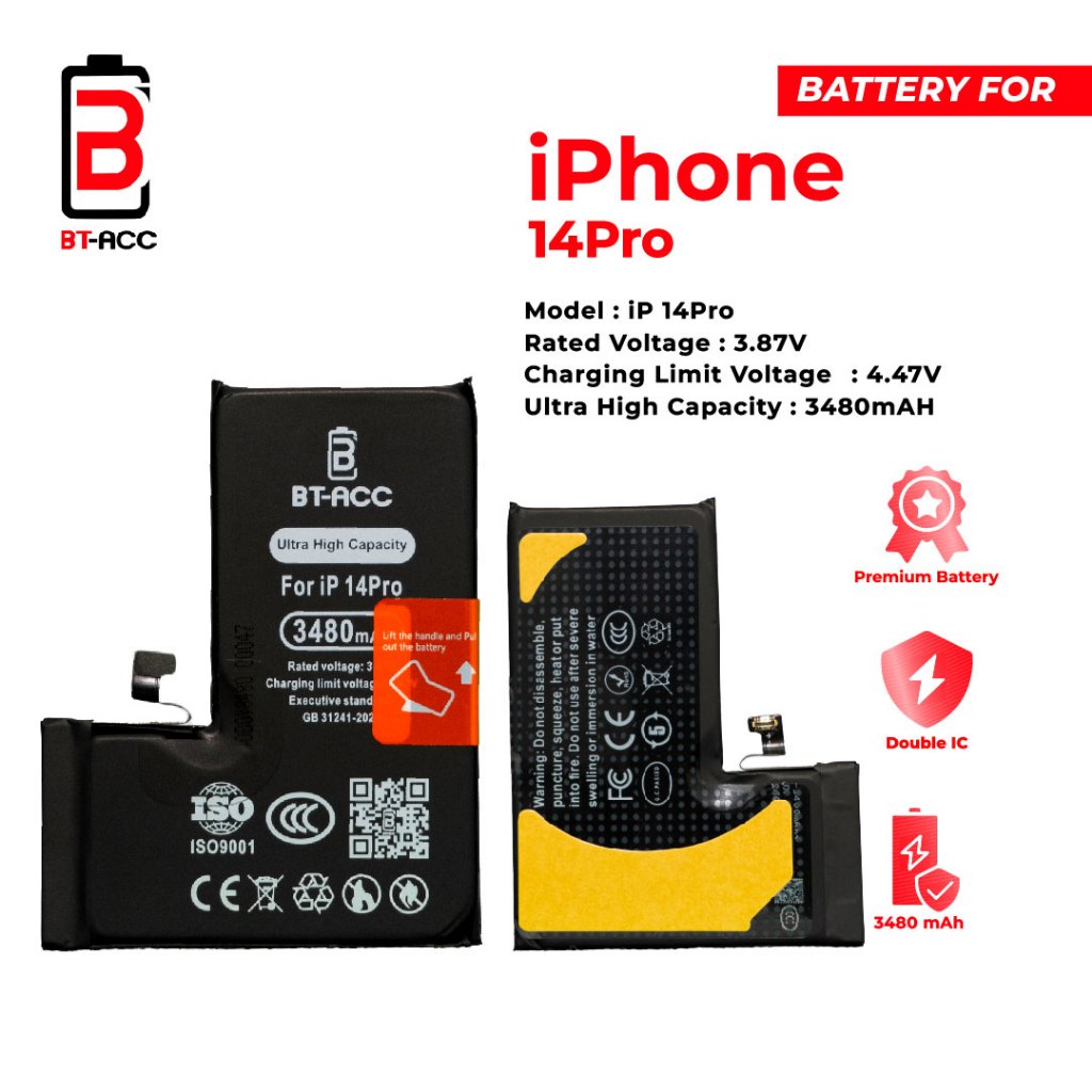 BT-ACC Ultra High Capacity Battery Baterai Batre For Iphone 14 Pro With 3480mAh