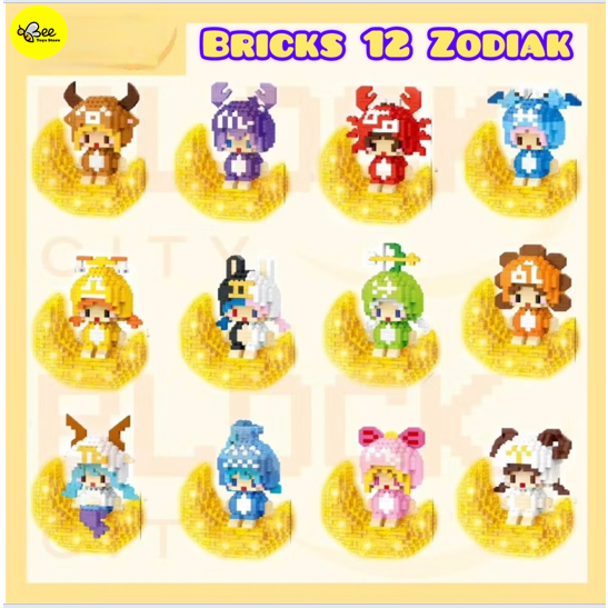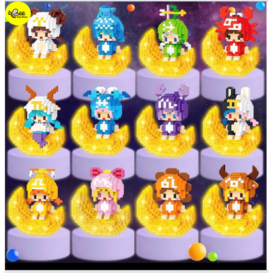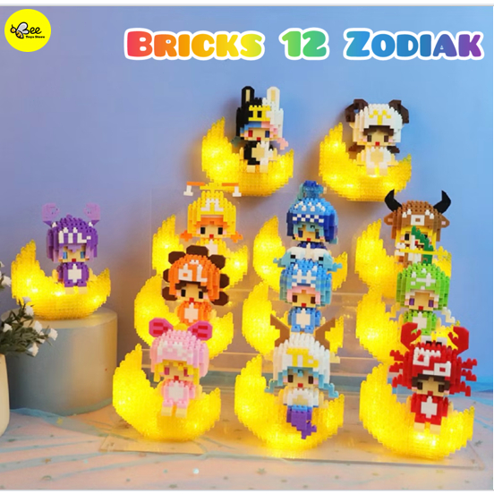 BTS Mainan Bricks MINI 12 Zodiak LED Glowing DIY Puzzle 3D Model, Building Blocks, Mainan Edukasi