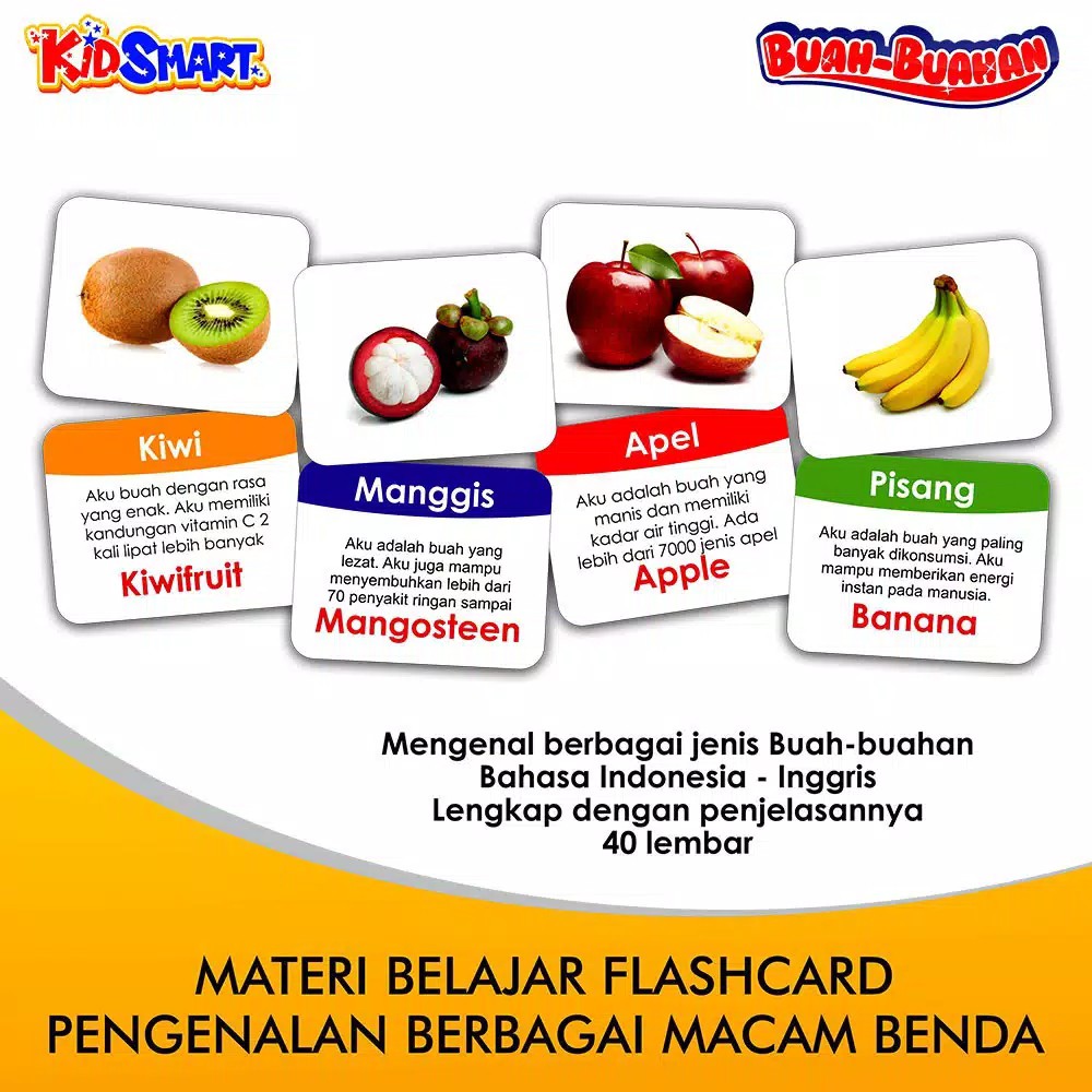 BUAH - Flashcard Kartu Belajar Seri Ayo Mengenal Buah - buahan flash card kartu pintar