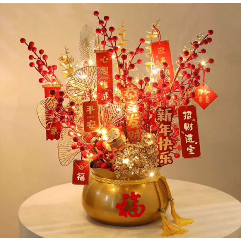 BUCKET FU BUNGA Blessing Bunga mewah/ Bunga Keberuntungan / Bunga imlek/ Gantungan Hiasan bunga / Gantungan Hoki Paper Tag Imlek Murah/ Hampers Imlek 2024 Bunga Dekorasi Pajangan Imlek Mewah Merah Terbaru