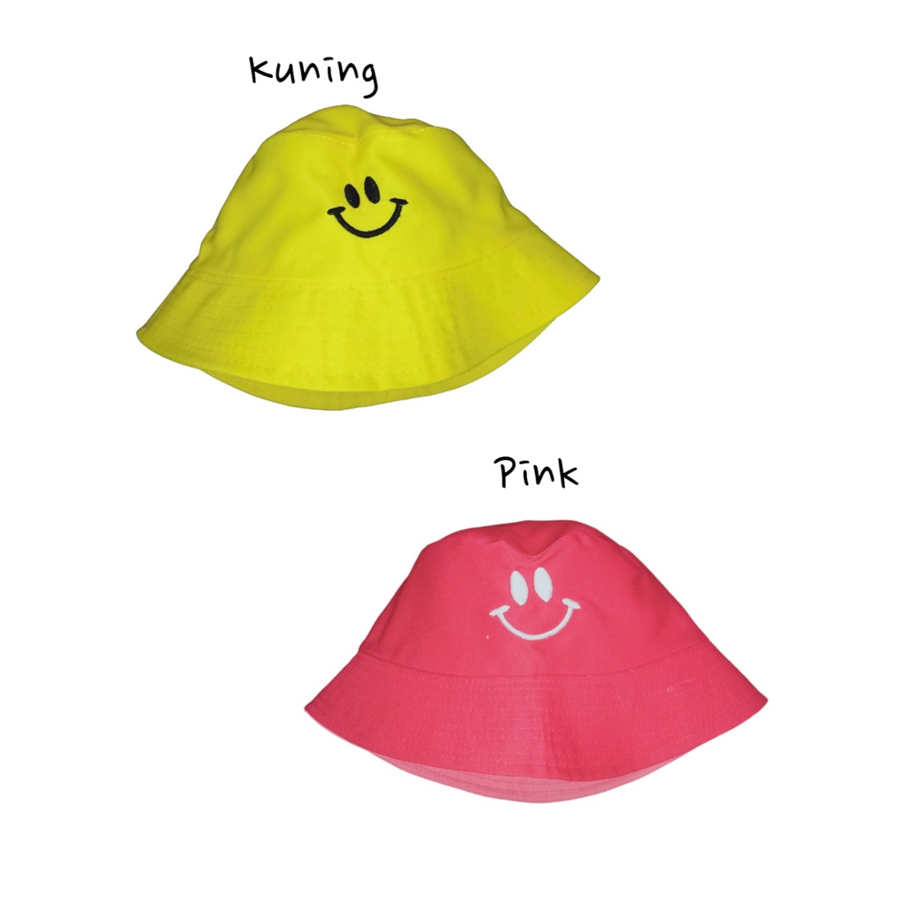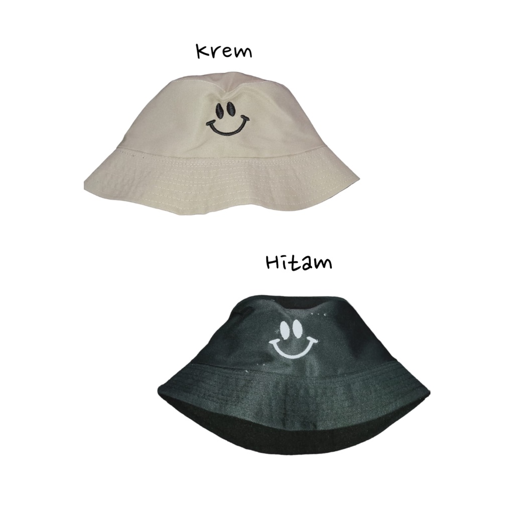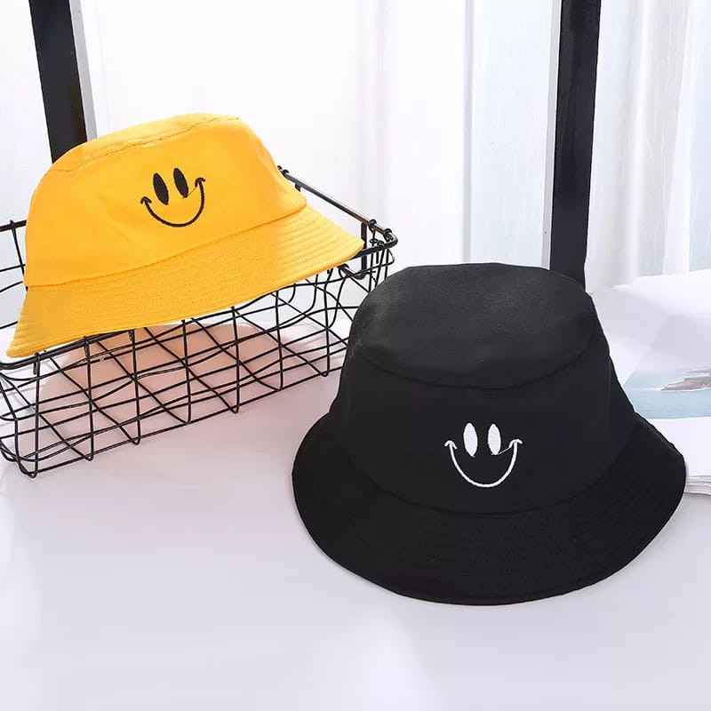 BUCKET HAT / TOPI BUCKET BORDIR SMILE PRIA WANITA REMAJA DEWASA KOREAN STYLE