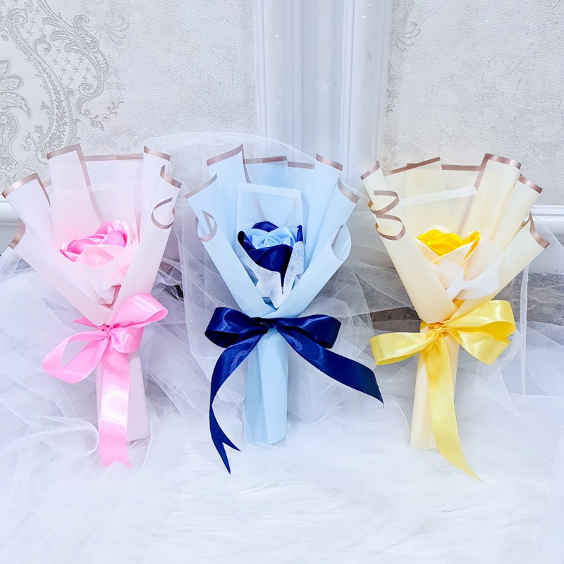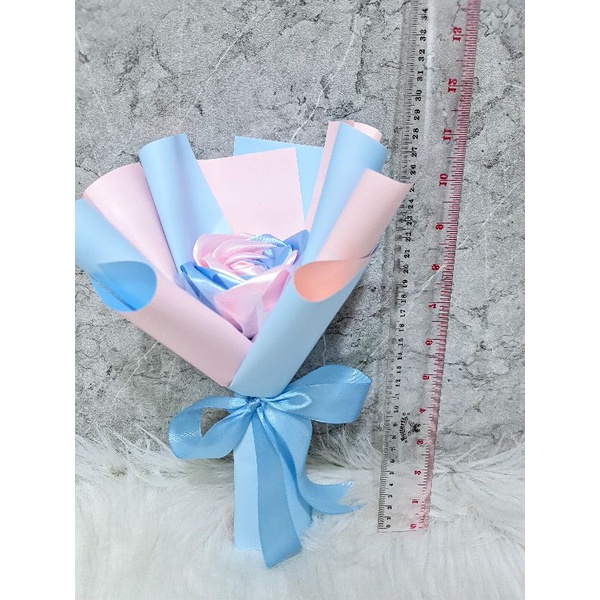 BUKET BUNGA - 1 STEM - BOUQUET - BUCKET BUNGA SATIN PAPER - HADIAH WISUDA GRADUATION - BIRTHDAY GIFT - UKURAN SMALL (buket wisuda, buket bunga satin, hadiah wisuda, bouquet murah jakarta, premium bouquet )