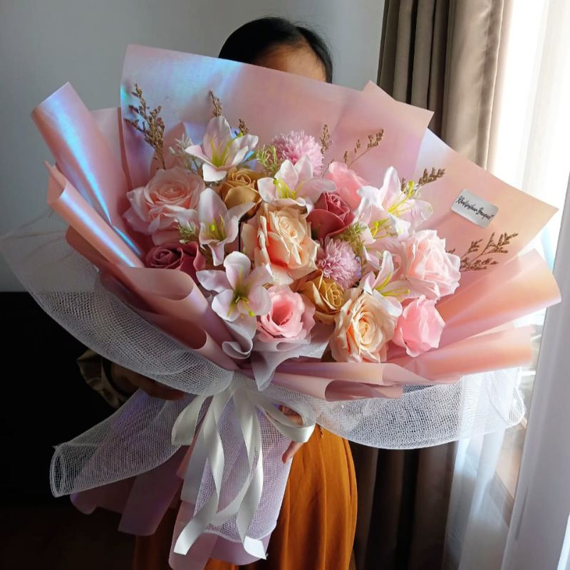 BUKET BUNGA ARTIFICIAL KODE ADARA BIG/JUMBO uk 50X60CM FULL HOLOGRAM bunga imitasi/artificial