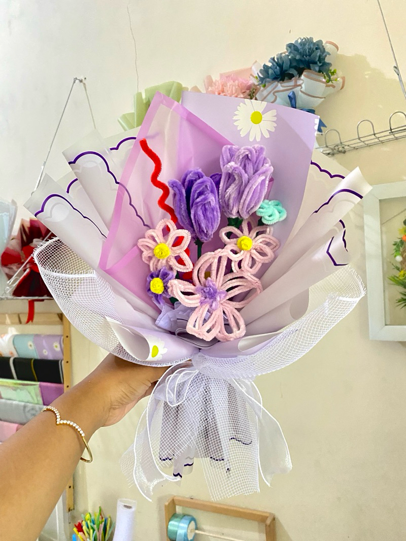 BUKET BUNGA KAWAT BULU MERCY PREMIUM buket bunga pipe cleaner ( FREE KARTU UCAPAN & PACKING)