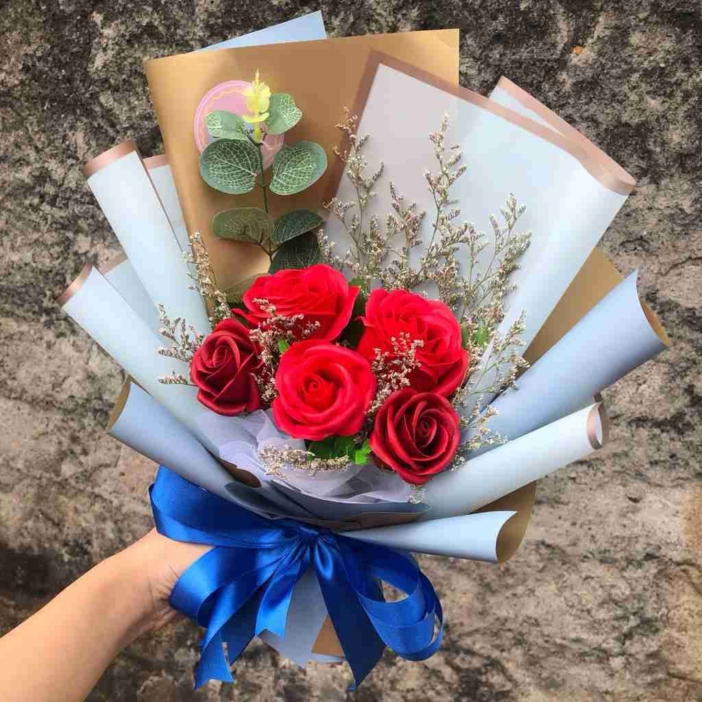 BUKET BUNGA MAWAR / BOUQUET / BUCKET BUNGA MAWAR (Biru)