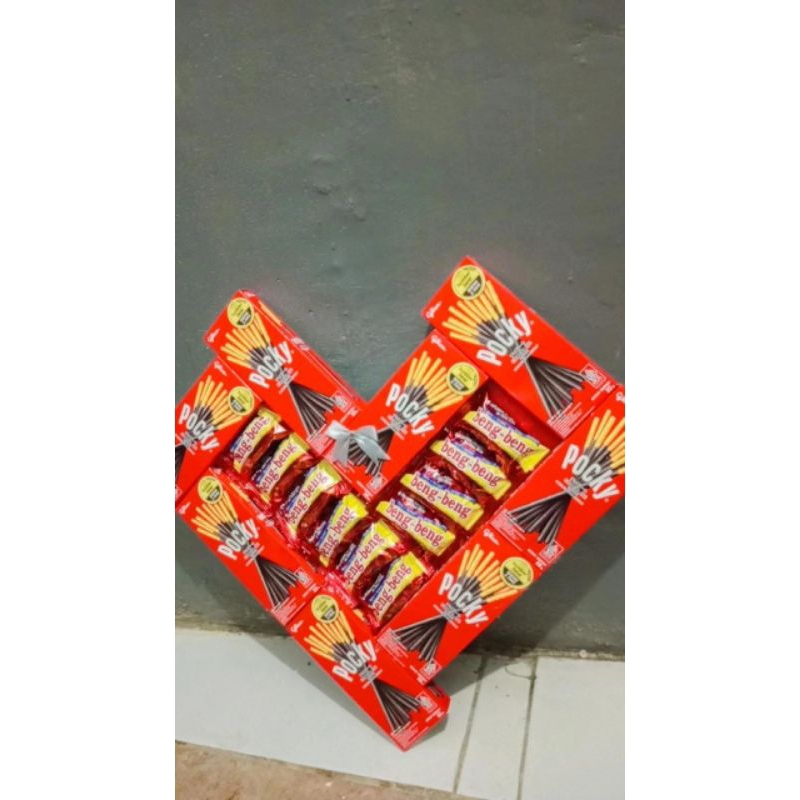 BUKET POCKY LOVE / BUKET LOVE / SNACK LOVE / POCKY BENTUK LOVE / PAKET HADIAH COKLAT