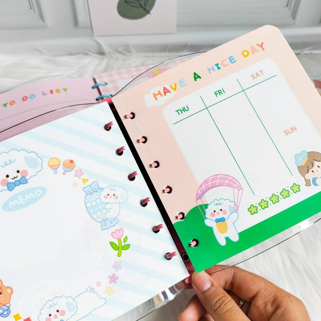 BUKU BINDER MOMO PERSEGI (ISI 60 LEMBAR) (UKURAN KERTAS 13cm x 13cm) (6 RING) KARAKTER HEWAN ANIMAL STICKER NOTEBOOK WARNA PASTEL ALAT JOURNALING TO DO LIST