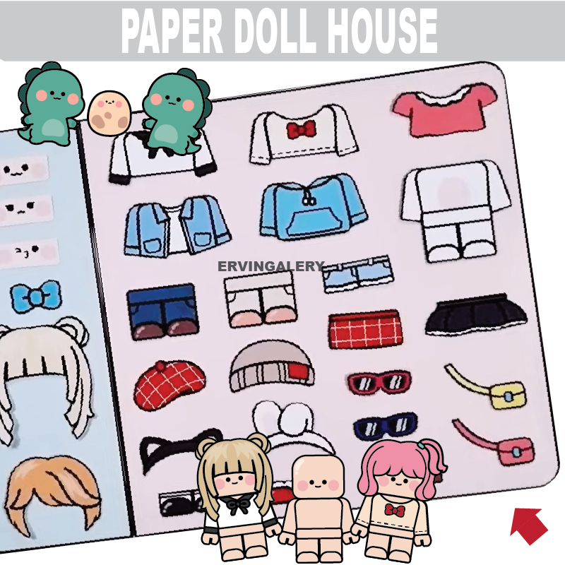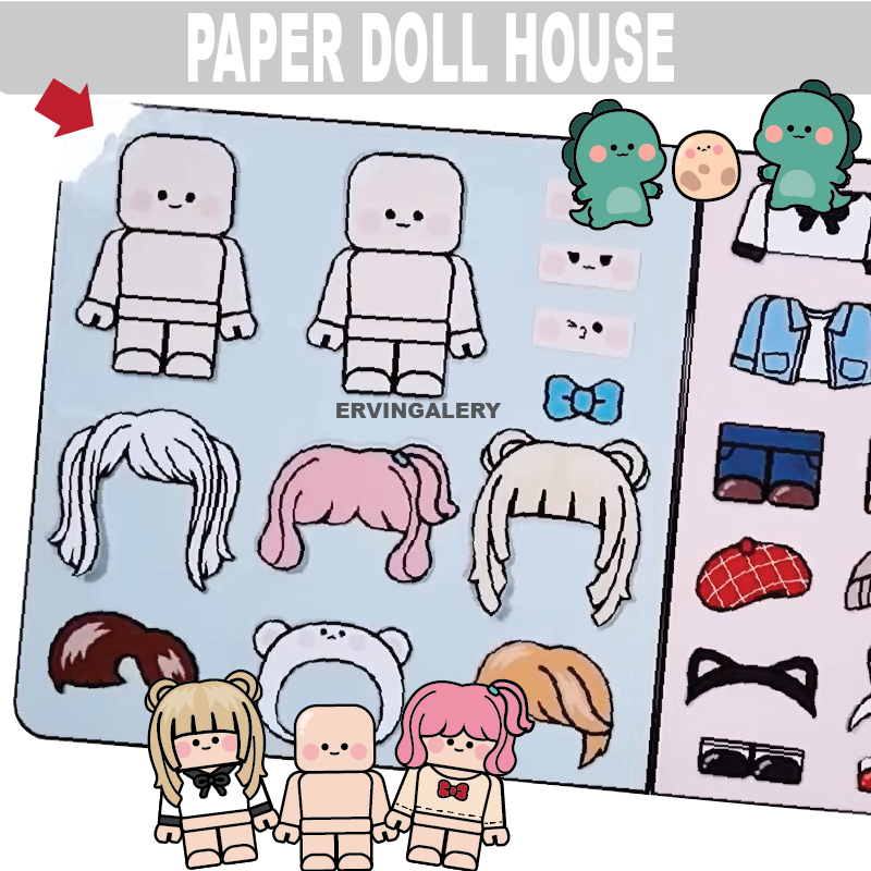 BUKU BONEKA paper doll house ROBLOX DINO busy book mainan edukatif anak bongkar pasang boneka kertas
