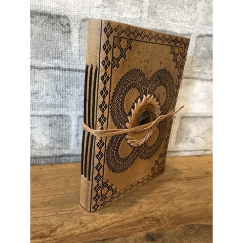 BUKU / BUKU KULIT / LEATHER JOURNAL MEDIUM LIGHT BROWN EMBOSS WITH STONE / BUKU VINTAGE