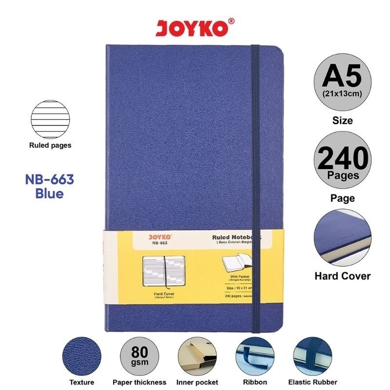 BUKU CATATAN HARD COVER JOYKO/ DIARY AGENDA BERGARIS TITIK TITIK A5 JOYKO/ RULED DOTED NOTEBOOK HARD COVER A5 JOYKO NB-663 NB-701/ BUKU JURNAL BERGARIS POLOS HARD COVER