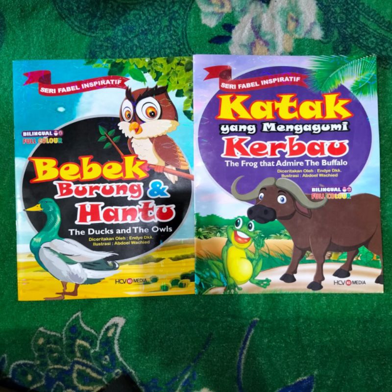 BUKU FABEL CERITA ANAK DAN DONGENG BINATANG BILINGUAL UKURAN BESAR BEBEK DAN BURUNG HANTU KATAK YANG MENGAGUMI KERBAU