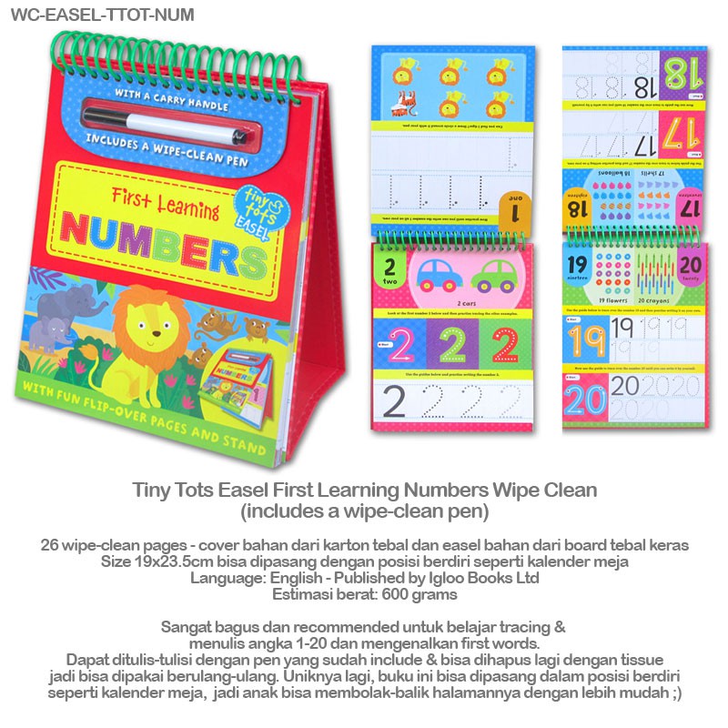 BUKU IMPORT TINY TOTS EASEL FIRST LEARNING NUMBERS WIPE CLEAN 26 PAGES