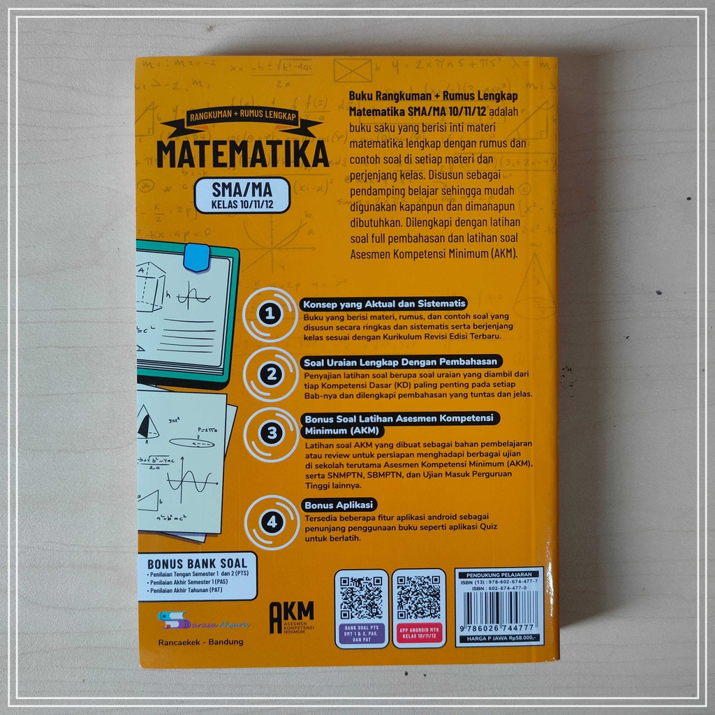 BUKU MATEMATIKA SMA RANGKUMAN + RUMUS LENGKAP MATEMATIKA SMA KELAS 10,11,12 - BUKU MATEMATIKA (100% ORIGINAL)