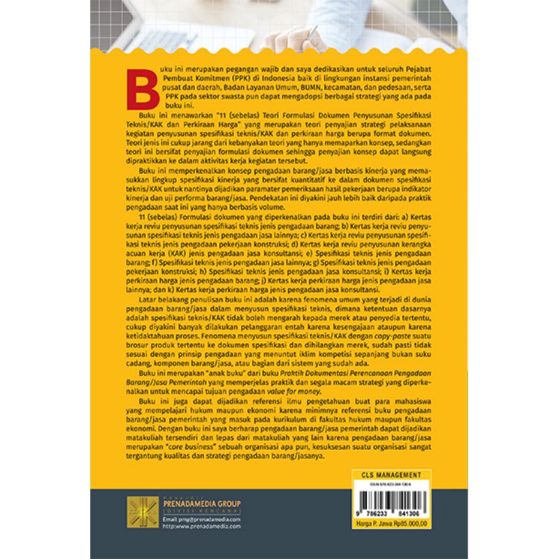 BUKU PETUNJUK TEKNIS PENYUSUNAN SPESIFIKASI TEKNIS/KAK DAN PERKIRAAN HARGA PENGADAAN BERBASIS KINERJA