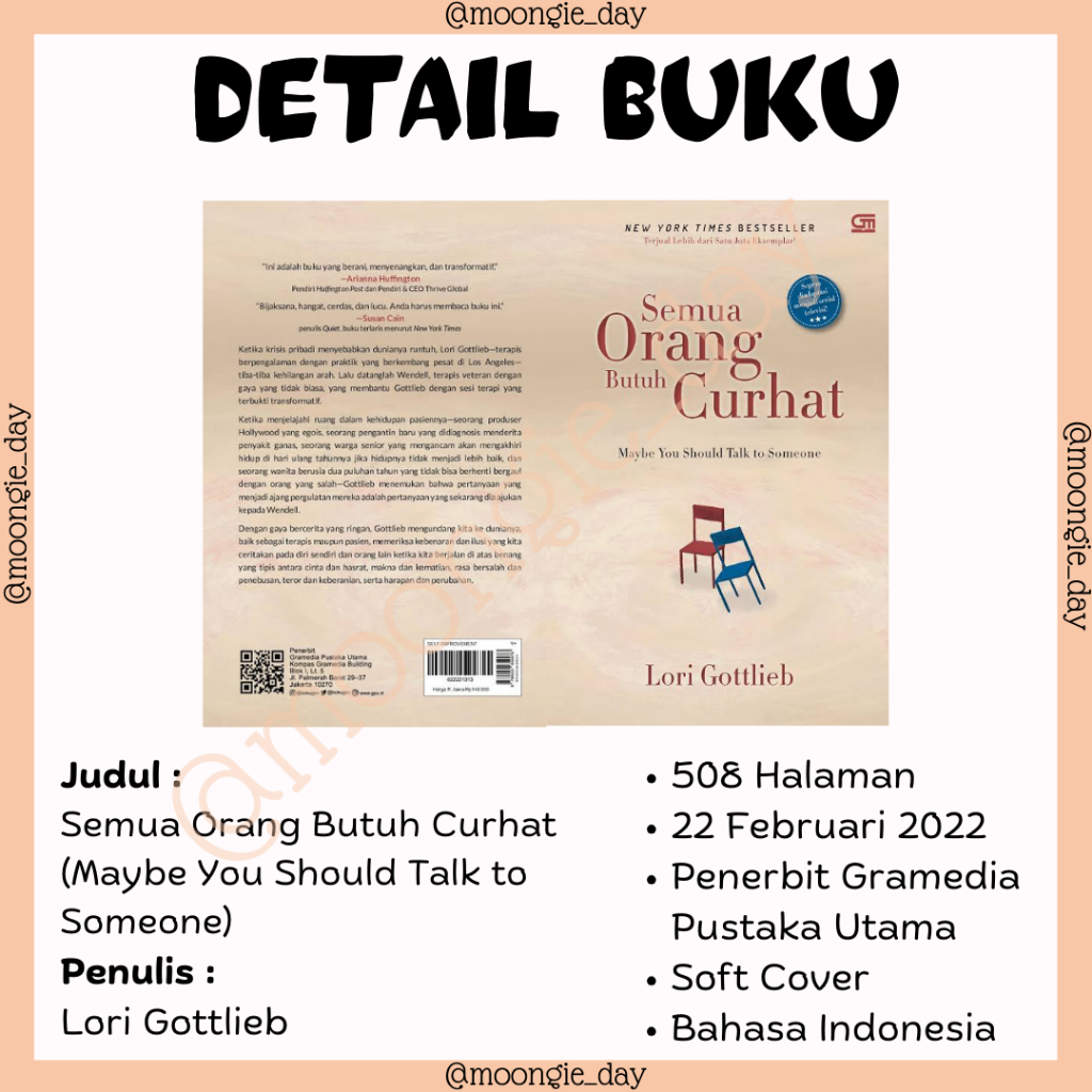 BUKU SELF IMPROVEMENT SEMUA ORANG BUTUH CURHAT (MAYBE YOU SHOULD TALK TO SOMEONE) BY LORI GOTTLIEB (Edisi Revisi) (BARU/ORI)