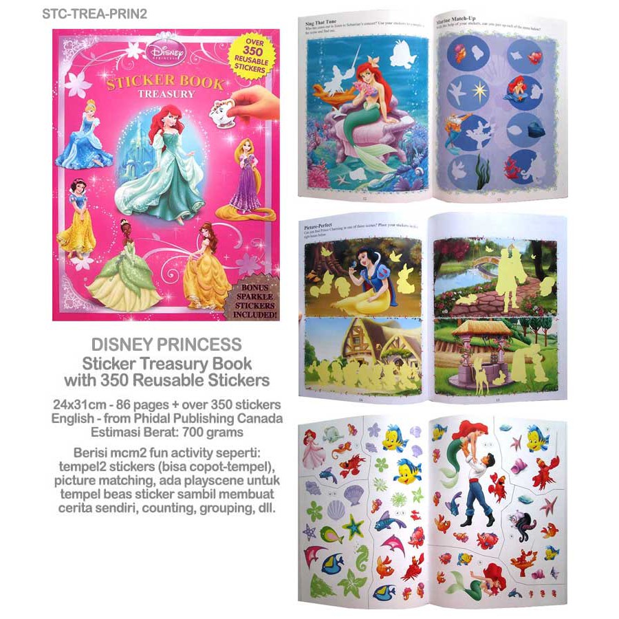 BUKU STICKER BOOK TREASURY DISNEY PRINCESS 350 REUSABLE STICKERS