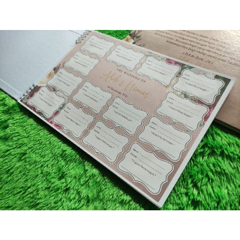 BUKU TAMU WEDDING CUSTOM / GUEST BOOK CUSTOM / BUKU TAMU BUNGA MAWAR ELEGANT / BT - 12