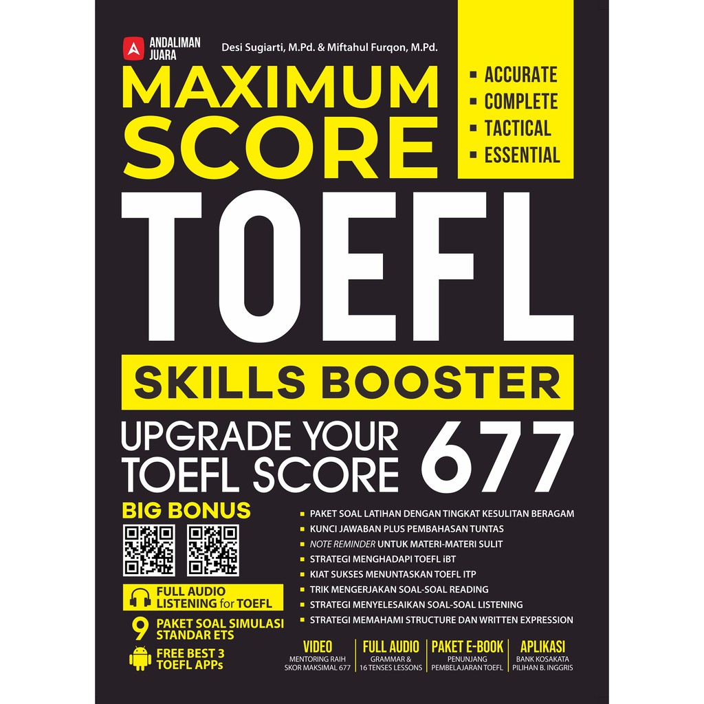 BUKU TOEFL MAXIMUM SCORE SKILLS BOOSTER 9 PAKET SOAL SIMULASI STANDAR ETS - ANDALIMAN JUARA -