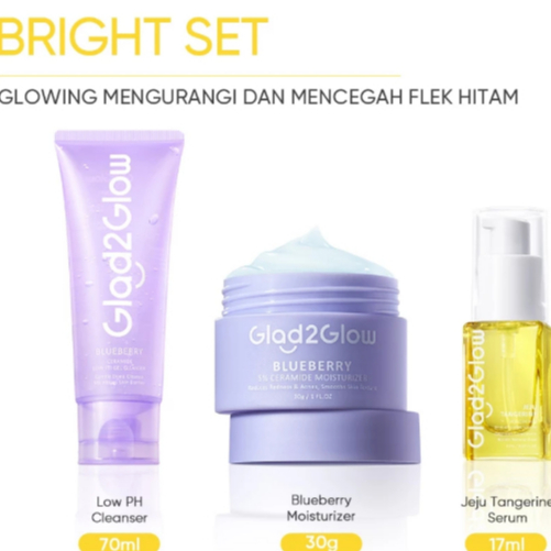 BUNDLE GLAD2GLOW G2G Blueberry Cleanser/Face Wah+Serum+Moisturizer Paket Basic Skincare 1 Set 3 pcs