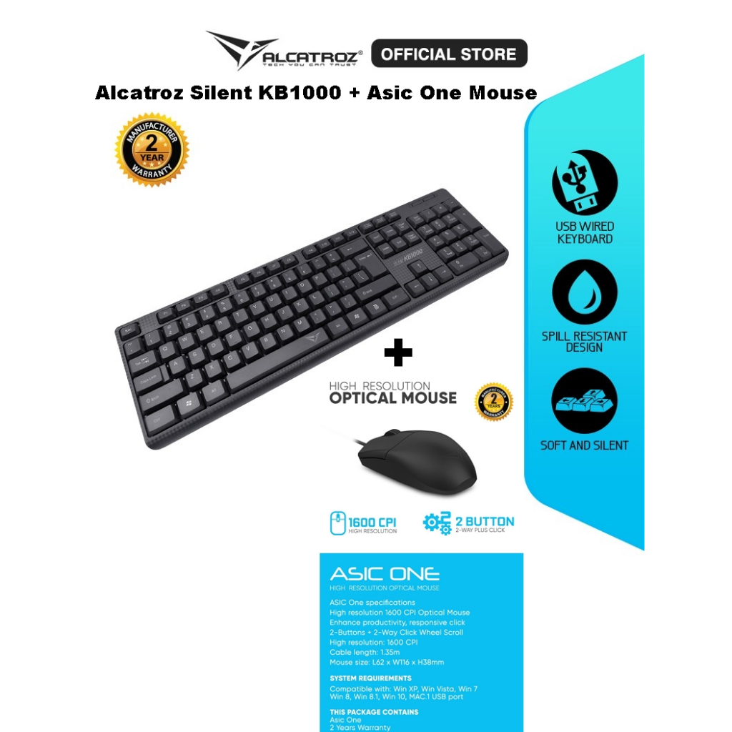BUNDLE Keyboard Mouse Office Alcatroz Silent KB1000 + Asic One Mouse