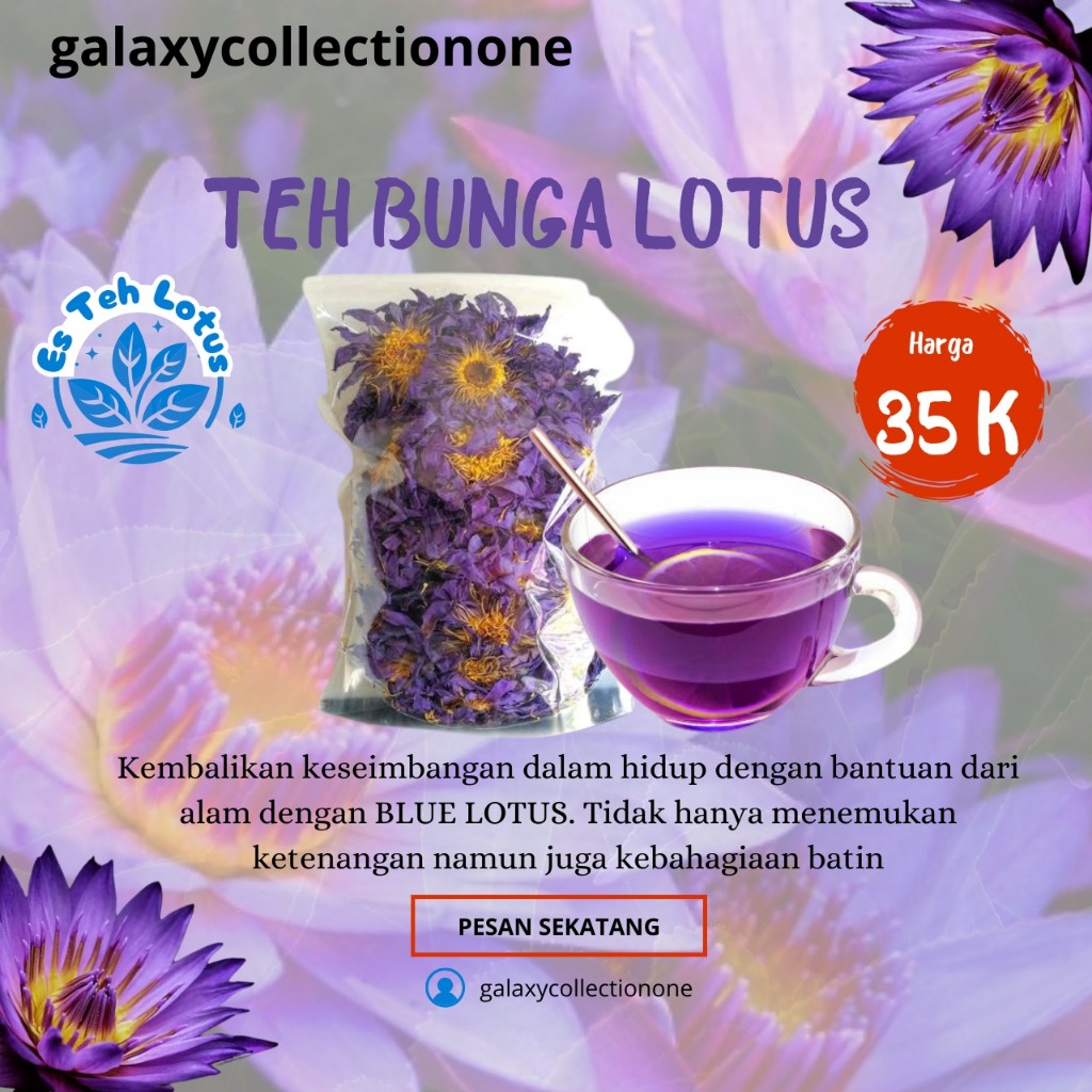 PAKET LENGKAP BUNGA LOTUS KERING 10 GRAM / TEH BUNGA LOTUS KERING / TEH DRIED BLUE LOTUS