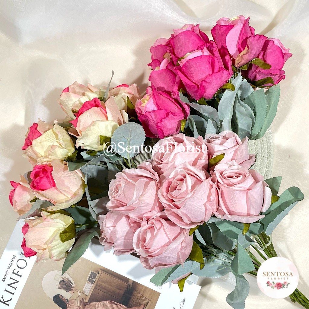 Mawar Kuncup Jumbo Premium Bunga Hias Mawar Bucket Artificial Bunga Dekorasi Premium Import (KN-29)