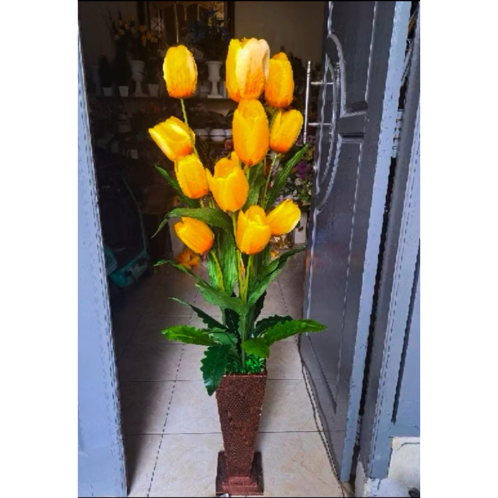 BUNGA TULIP JUMBO ARTIFICIAL BERIKUT POT KAYU/BUNGA SUDUT RUANGAN /BUNGA POJOK