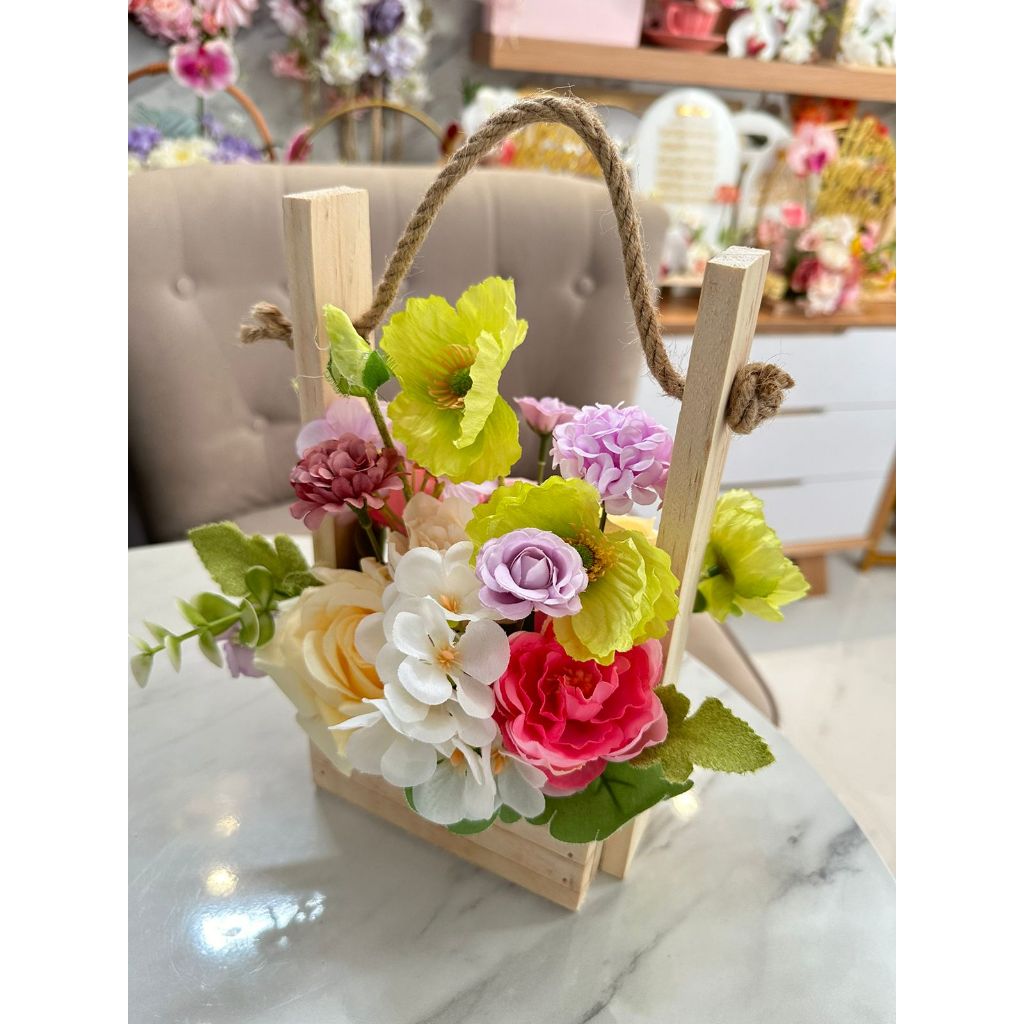 BUNGA VAS TIMBA KAYU / HIASAN MEJA BUNGA / HIASAN MEJA CANTIK / BUNGA MEJA / RANGKAIAN BUNGA MEJA