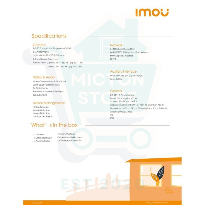 BUNTON IMOU BULLET 3 3MP Resolution 2K CCTV Camera Smart Kamera CCTV Outdoor WIFI 6 Full Color Supports Wi-Fi 6 Connection Smart Full-color Night Vision Al Human & Vehicle Detection IP67 Two Way Talk Wi-Fi 6 PoE Connection