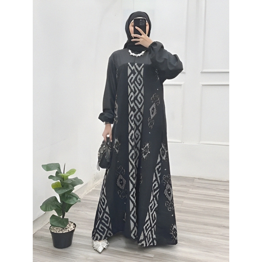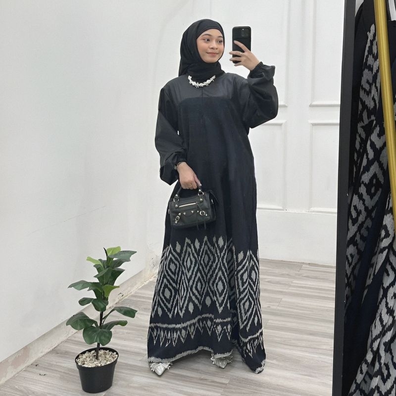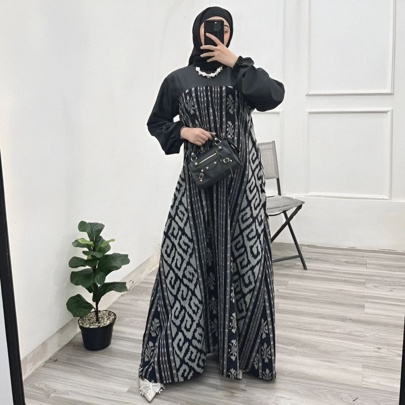 BUSANA BATIK TENUN WANITA BAJU GAMIS SERAGAM PESTA DRESS KONDANGAN/PREWEDING