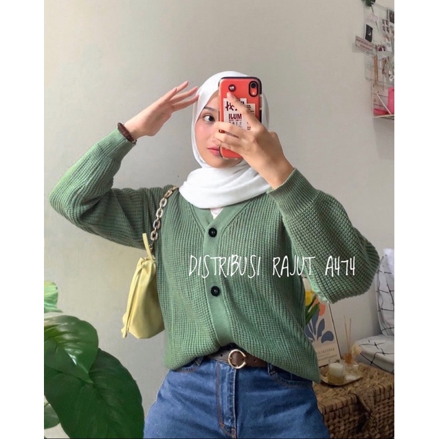 BUTTON CARDY PREMIUM KARDIGAN RAJUT CROP 7 GAUGE ACE LEMBUT DR A474