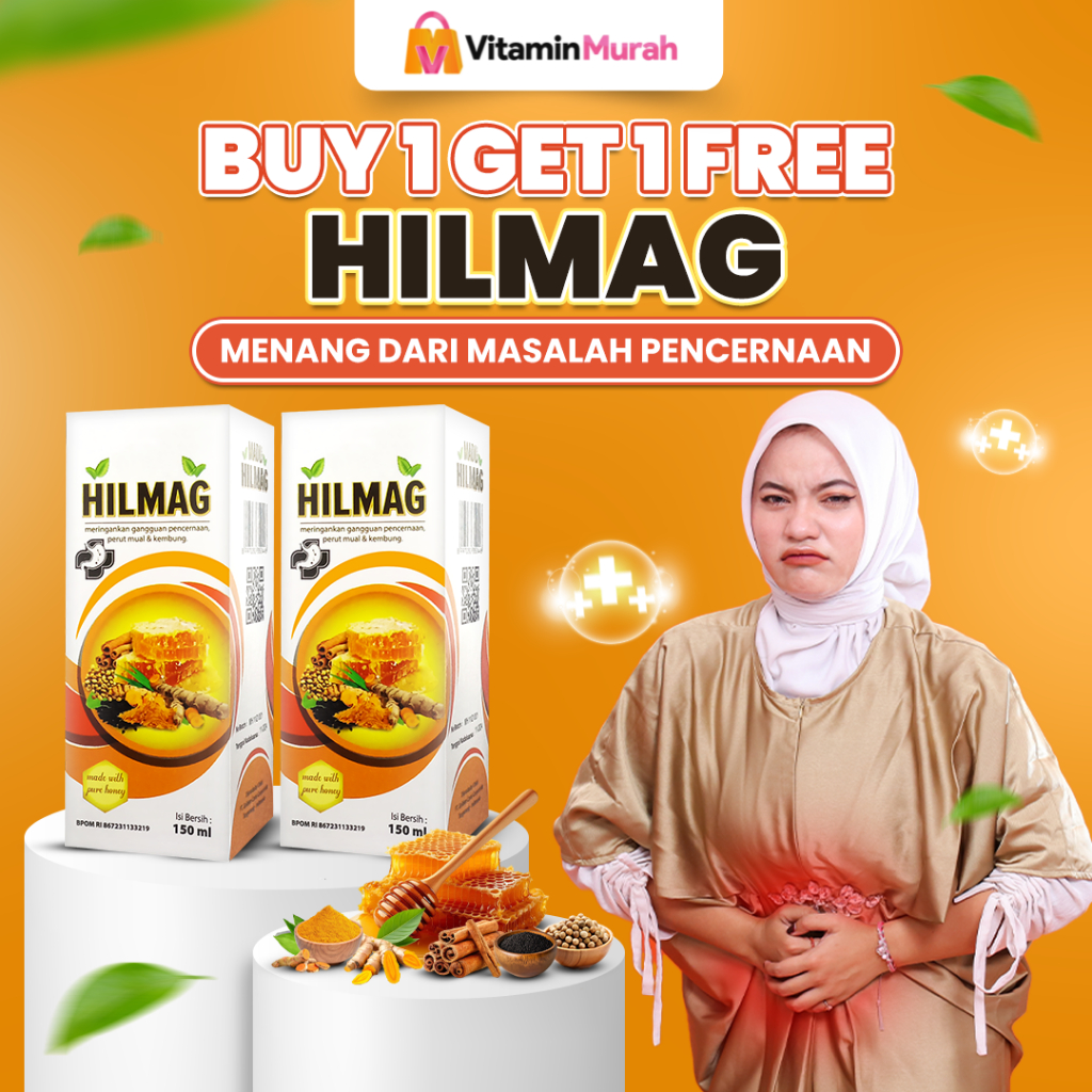 BUY 1 GET 1 HILMAG HERBAL GANGGUAN PENCERNAAN ASAM LAMBUNG MAAG ISI 2X150 ML - MADU KUNYIT HERBAL KEMBUNG NYERI PERUT MUAL BEGAH BPOM