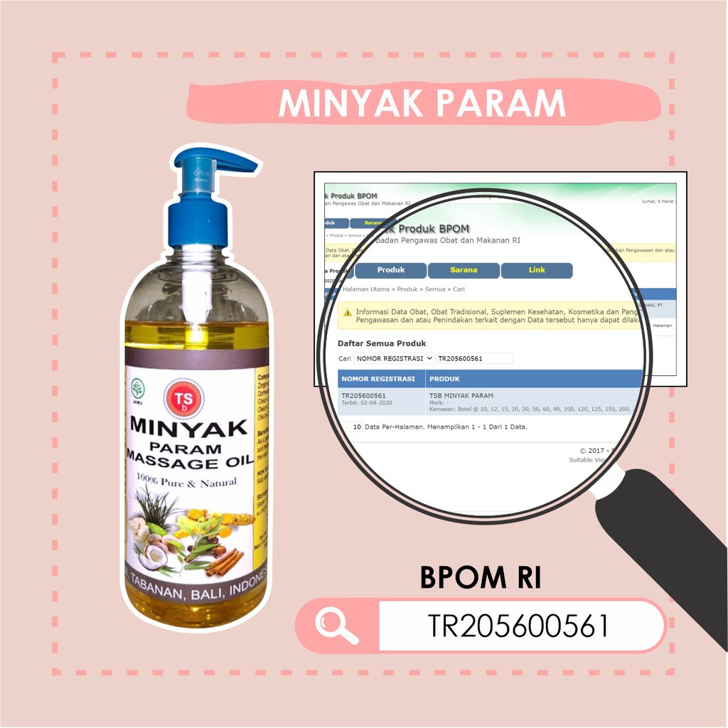 BUY 2 GET 1 FREE !!! TSb Minyak Param 100% Bahan Alami Natural Param Massage Oil 500ml