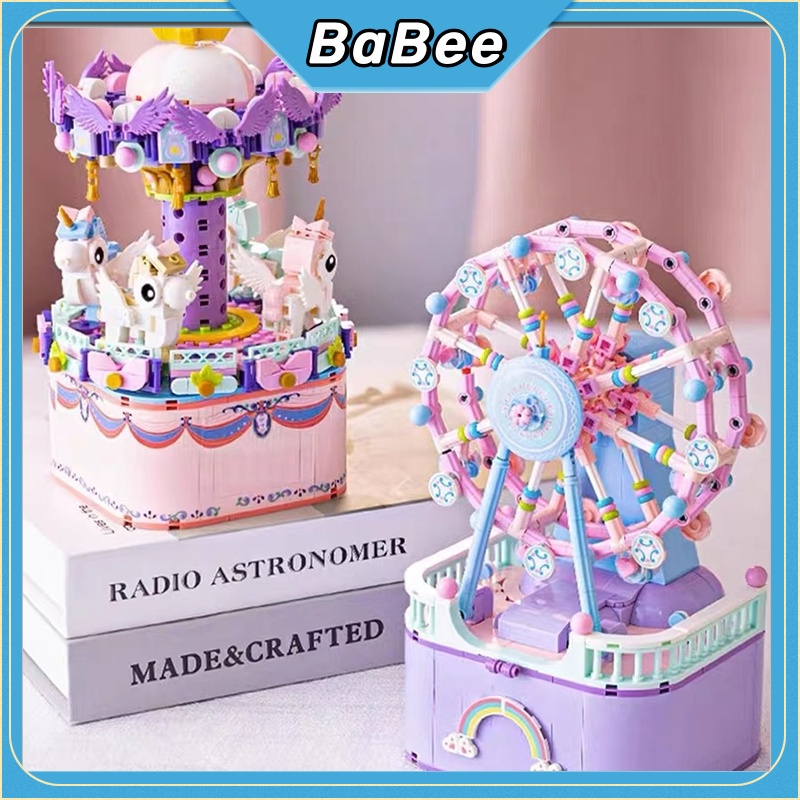 BaBee Mainan Brick Balok / Kotak Musik Kincir Ria / DIY Blok Susun Bangunan Lucu Kotak Music