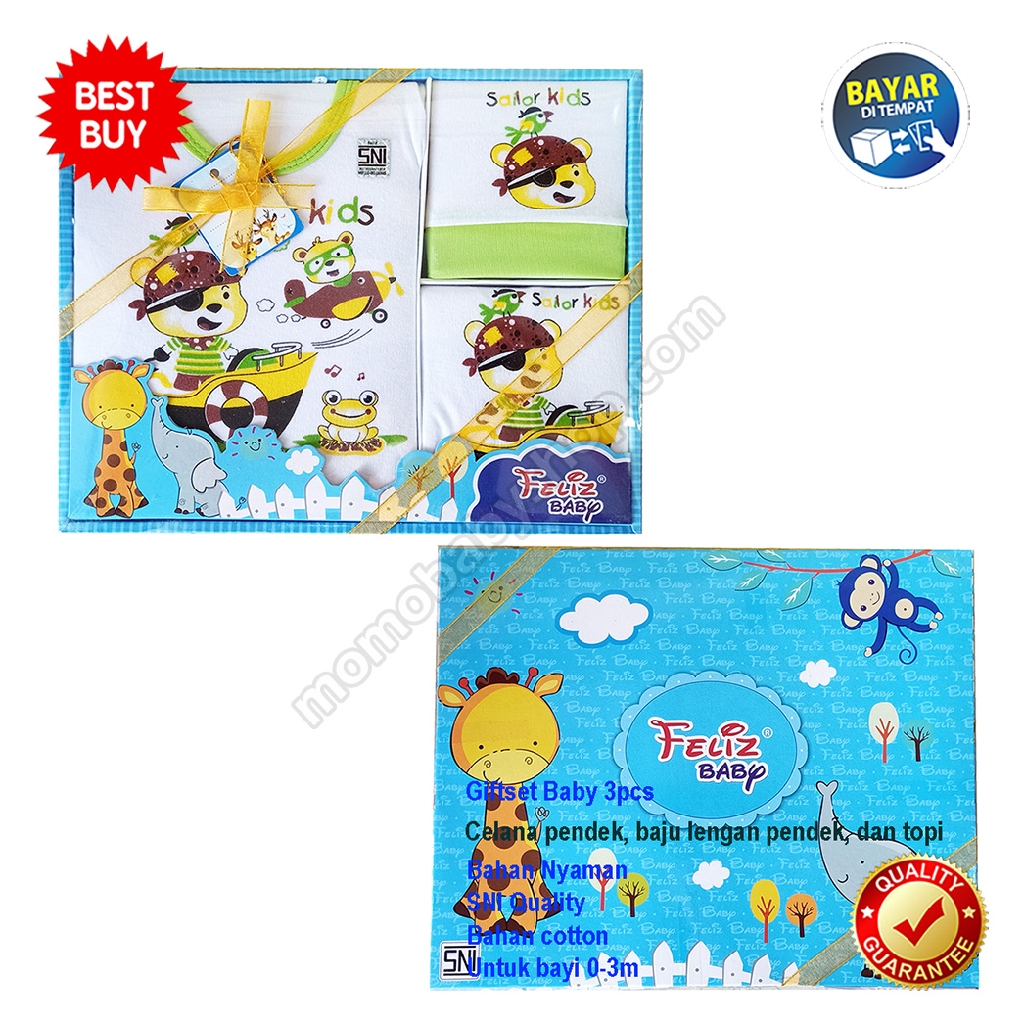 Baby Gift Set Feliz Baby 3in1/ Baju Newborn Set/ kado Bayi