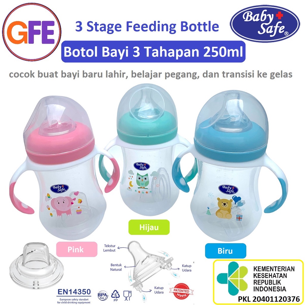 Baby Safe Botol Susu 3 Tahap Bayi 250ml Bottle 3 Stage Feeding System WN30